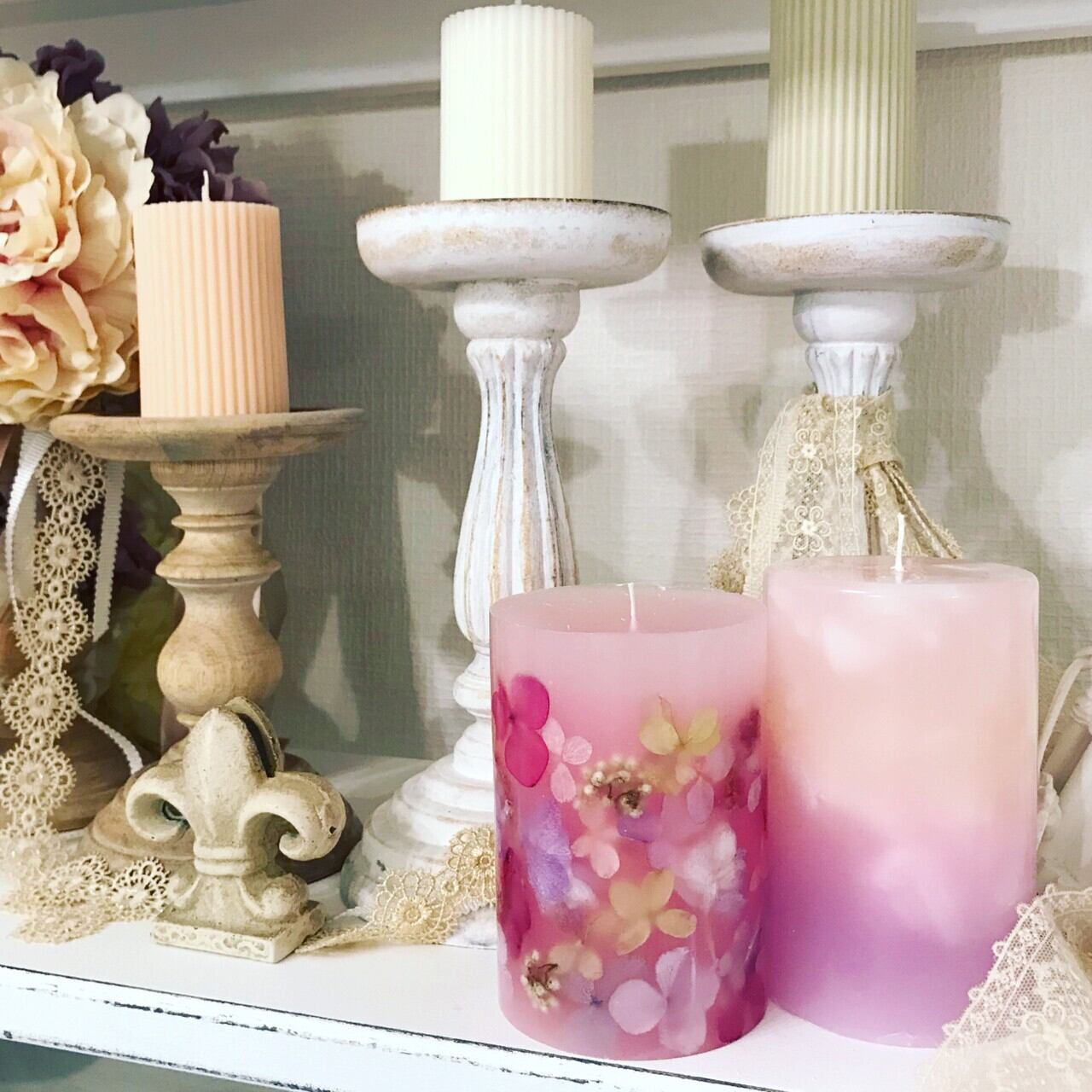 お花をふんだんにしきつめたボタニカルキャンドル。